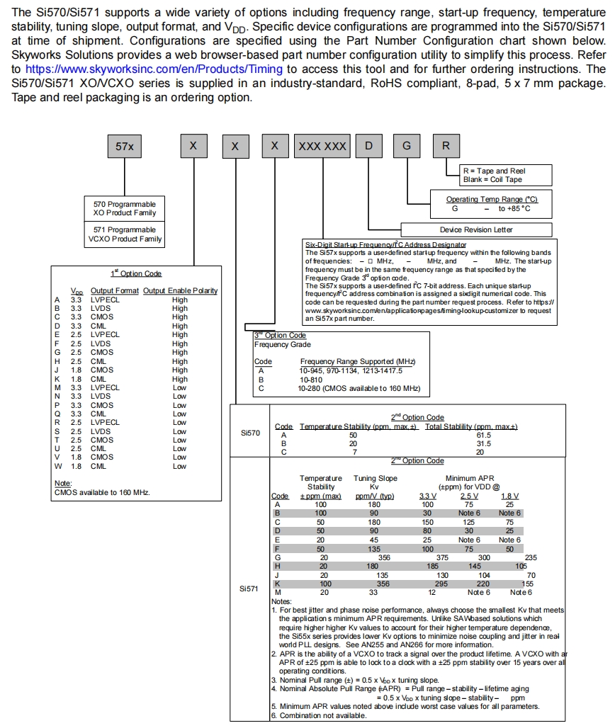 | 571AEA000227DG | Skyworks Solutions Inc. | Si571 | 980 MHz | LVPECL | 2.97V ~ 3.63V | ±20ppm |