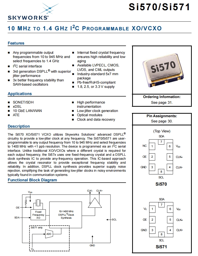 | 571AMA000444DG | Skyworks Solutions Inc. | Si571 | 1 GHz | LVPECL | 2.97V ~ 3.63V | ±20ppm |