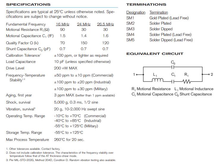 Statek石英晶體振蕩器低消耗低電流只需3.2~2.5mm,頻率范圍從20MHZ~50MHZ可供選擇,電壓范圍在1.8V~3.3V之間,在產(chǎn)品中使用的工作溫度范圍廣-55°C+125°C.并且具有超強的耐沖擊性能,可用于軍工產(chǎn)品,軍事領域.