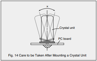 (4)在PC板上安裝晶體單元后,移動如圖14所示的單元使支架基底玻璃破裂導(dǎo)致特性惡化。別動了這樣的水晶單元。