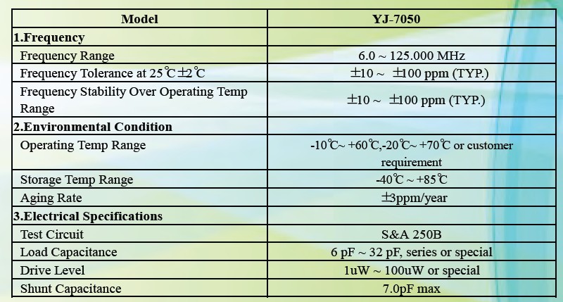 7.0*5.0mm詳細請瀏覽PDF文檔
