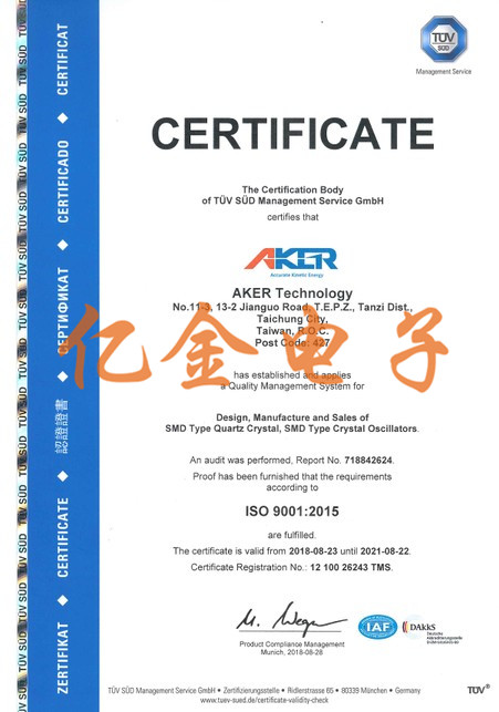 AKER Crystal安碁科技為石英晶振,貼片晶振,晶體振蕩器專業(yè)制造商,一直致力于提供給顧客高品質(zhì)的產(chǎn)品.成立于1990年,是一家全球性高科技公司,以技術為導向,為各領域產(chǎn)品提供設計和制造各種頻率控制解決方案.安基晶振公司為了能不斷地提供顧客更優(yōu)質(zhì)的產(chǎn)品,借著ISO9001及TS16949等品質(zhì)管理系統(tǒng)的導入,以便能提升公司內(nèi)全體人員之品質(zhì)觀念,進而達到品質(zhì)保證的目的.