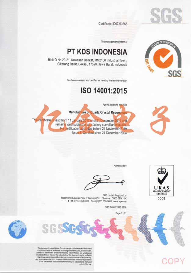 KDS晶振ISO14001環(huán)保認(rèn)證