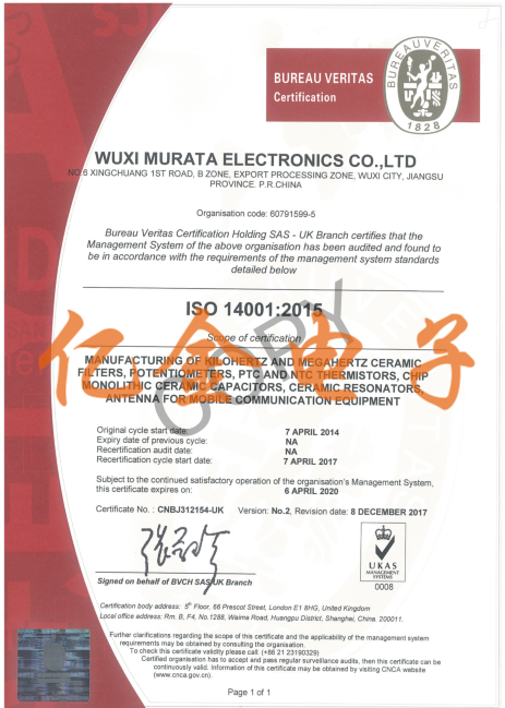 村田晶振ISO14001國(guó)際環(huán)保認(rèn)證