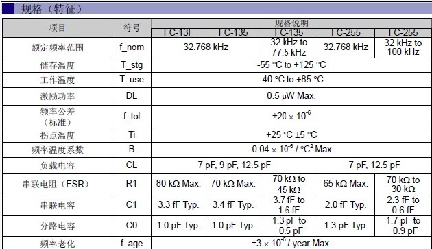 愛普生晶振FC13F規(guī)格