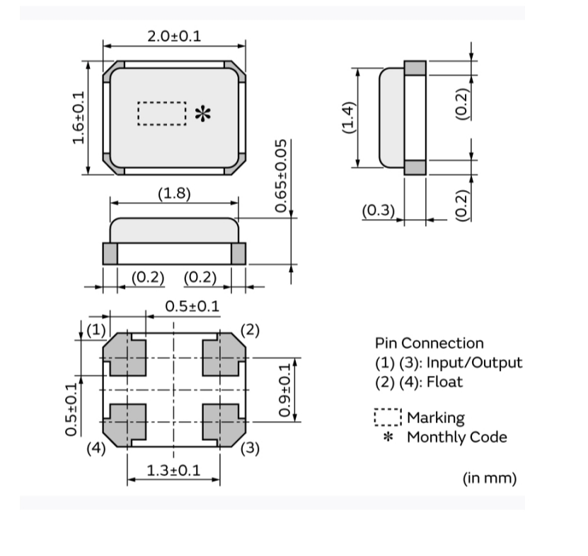 | Size/Dimension尺寸 | 2.00mm x 1.60mm | 安裝方式MountingStyle: | SurfaceMount |