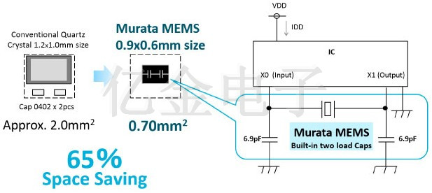 32.768kHz MEMS諧振器可以利用低ESR特性來(lái)降低IC增益.這使得能夠減少晶振晶體振蕩電路的電流消耗和整個(gè)組的功耗.