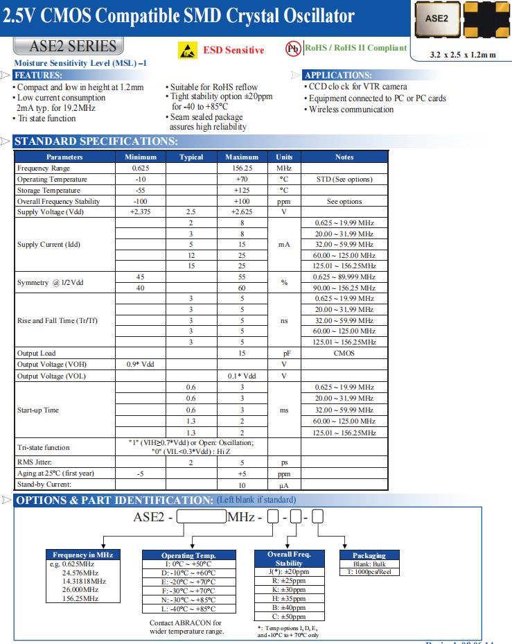| ASE2-12.500MHZ-ET | Abracon晶振 | ASE2 | XO (Standard) | 12.5MHz | 2.5V | -20°C ~ 70°C |