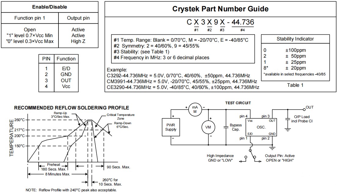 | C3290-44.736 | Crystek晶振 | C3290 | XO (Standard) | 44.736MHz | ±100ppm |
