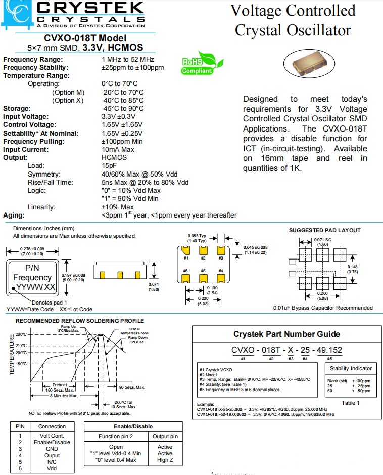 | CVXO-018TX-50-12.352 | Crystek晶振 | CVXO-018T | VCXO | 12.352MHz | ±50ppm |