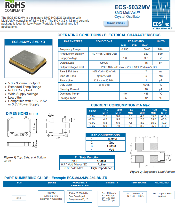 ECS-5032MV-250-BN-TR非常適合導(dǎo)航和無線設(shè)備應(yīng)用