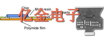 IC芯片,貼片晶振等SMT部件安裝在薄膜基板上,不僅可以實現(xiàn)薄型封裝,還可以實現(xiàn)高自由度的輕質(zhì),緊湊和高密度封裝.而且,金或鍍錫的鉛可以粘合到金凸塊上,并且這種內(nèi)部引線鍵合方法具有低阻抗的特性.