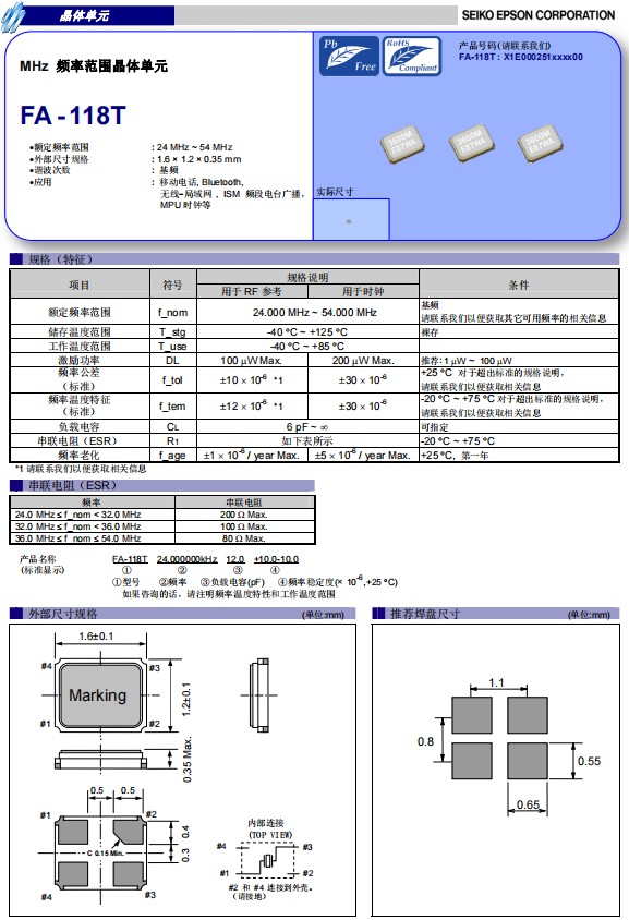 超小型1612mm無源晶振FA-118T適用于移動(dòng)電話應(yīng)用
