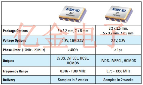 IDT的XL和XU晶體振蕩器有HCMOS,LVPECL,LVDS和HCSL輸出.XU有源晶振和XL有源晶振系列具有300fs和750fs典型值.RMS相位抖動(12kHz-20MHz).器件提供±20ppm,±25ppm,±50ppm或±100ppm的頻率穩(wěn)定性選項,以及16kHz至1.5GHz的定制頻率的快速前置時間.IDT的XL晶振和XU晶體振蕩器系列采用行業(yè)標準封裝(3.2x2.5mm,5x3.2mm,7x5mm)和引腳排列.IDT的XU晶振和XL晶振具有滿足您設(shè)計要求的性能,價格和交付.應(yīng)用包括:網(wǎng)絡(luò),通信,數(shù)據(jù)I/O,存儲和服務(wù)器.