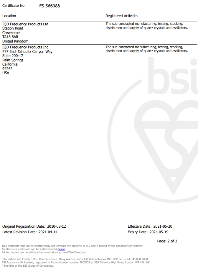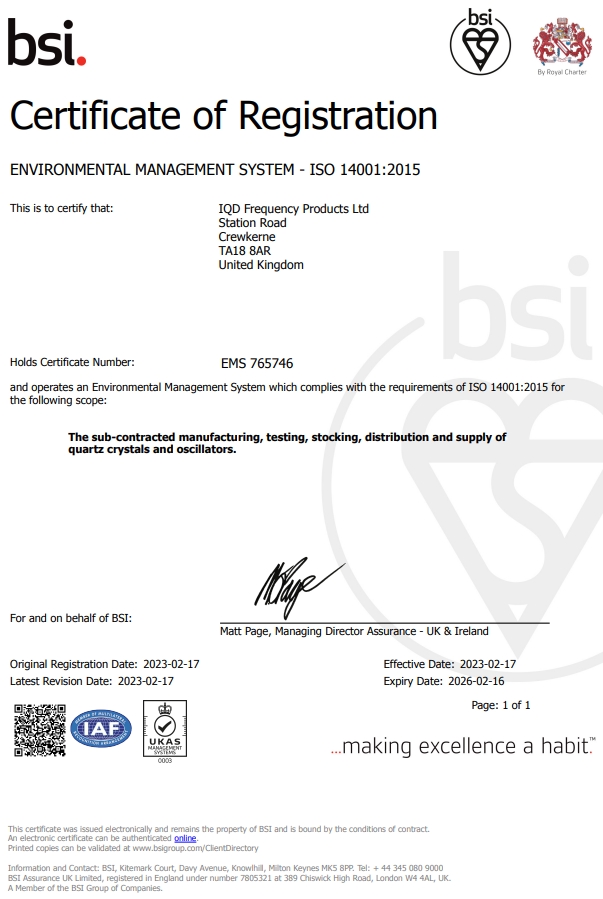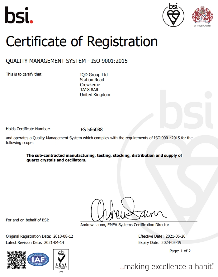 最初于1988年獲得BS 5750認(rèn)證,IQD所有的設(shè)計(jì)、制造和測(cè)試設(shè)施都通過(guò)了ISO 9001:2015認(rèn)證。我們的質(zhì)量管理體系不斷改進(jìn)和調(diào)整,以滿(mǎn)足國(guó)際標(biāo)準(zhǔn)和客戶(hù)的要求。 質(zhì)量是IQD晶振成功的基石,我們?yōu)槲覀兊囊幌盗蓄l率控制產(chǎn)品提供全面的質(zhì)量解決方案。我們的質(zhì)量管理體系確立了適當(dāng)?shù)睦砟?,以確保公司及其員工遵守文件規(guī)定的程序,并通過(guò)提供高度誠(chéng)信的產(chǎn)品和服務(wù)來(lái)保持客戶(hù)滿(mǎn)意度。
