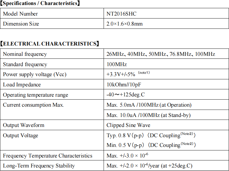 業(yè)界首創(chuàng)高溫操作(+125°C)高頻(高于100MHz)2016尺寸TCXO,NT2016SHC-125.000000MHZ-NSC5389A晶振,日本NDK晶振公司開發(fā)了業(yè)界首款2.0×1.6mm尺寸(0.8mm高度)