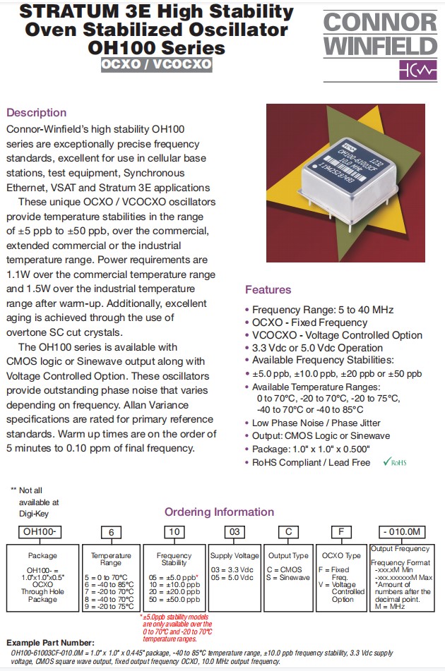 | OH100-61005SV-010.0M | ConnorWinfield晶振 | OH100 | 10MHz | -20°C ~ 70°C |
