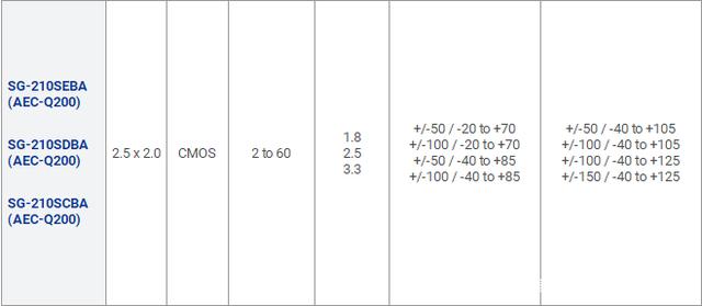 傳統(tǒng)的車載晶振,頻率穩(wěn)定度不足,容易發(fā)生振蕩現(xiàn)象;晶振的老化頻率大,不易應用于環(huán)視系統(tǒng)這種高度集成化產(chǎn)品,SG-210SCBA等車載晶振,其主要作用是接入圖像處理MCU,為其提供精準的時鐘輸出信號。三款晶振的頻率(-40-125℃)穩(wěn)定度為±100×10-6(Z),±150×10-6(X),穩(wěn)定性比一般晶振好,可解決由于晶振頻率穩(wěn)定性低造成的振蕩問題。三款車載晶振具有待機功能,在無負載條件(-40-85℃)時三者的功耗分別為1.6mA,2.4mA和3mA,可滿足低功耗應用需求。晶體頻率老化率僅為±3x10-6/年,具有較長的使用壽命,可解決傳統(tǒng)晶振老化頻率較大的這一痛點。在小型化設計方面,三款車載晶振的尺寸參數(shù)均為2.5×2.0×0.8mm,可提供小型化應用需求。