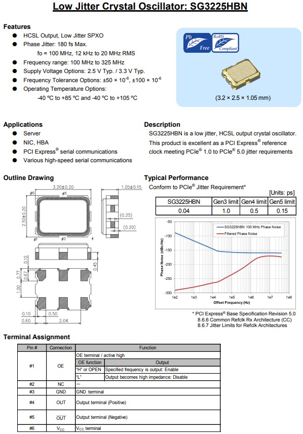 | X1G005141000500 | SG3225HBN | 125.000000MHz | 3.20x2.50x1.20mm | HCSL | 3.135 to 3.465 V |
