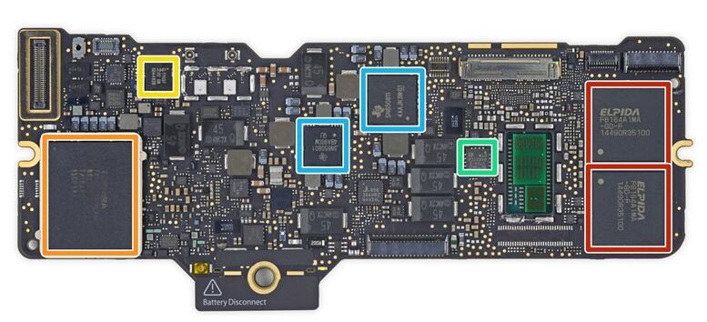全新MacBook的厚度不到2009款MacBook的一半,最厚的地方只有13mm.2009款MacBook上,有MagSafe、以太網(wǎng)、Mini DisplayPort、兩個(gè)USB、音頻接口和安全鎖孔.小心翼翼的將MacBook主板從鋁金屬外殼上拆下.蘋果提到Retina MacBook的主要要比11寸MacBook Air的小 67%.蘋果在MacBook中使用了英特爾Core M處理器,這款處理器可以減小尺寸以及散熱.