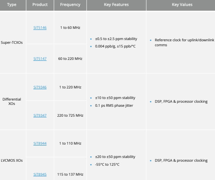 為了實現(xiàn)這一目標,它們依賴于堅固耐用的參考時鐘進行上行鏈路/下行鏈路通信和為處理器計時。計時組件必須承受發(fā)射過程中的高水平振動和軌道上持續(xù)的極端溫度變化。如果計時失敗,接收器將失去對衛(wèi)星的鎖定,導航系統(tǒng)將無法接收到關鍵數(shù)據(jù)。