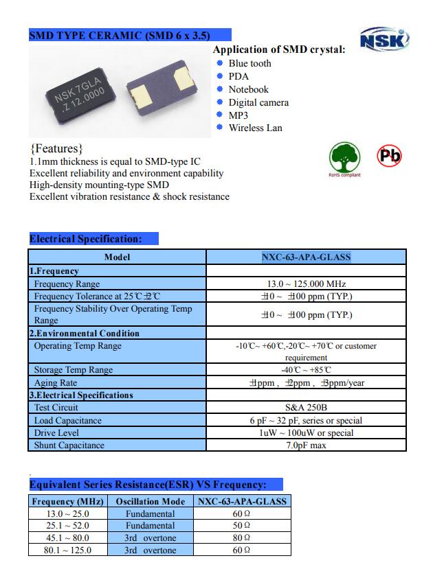 更多>>津綻晶振,NXC-63-APA-GLASS晶振,6035二腳晶振